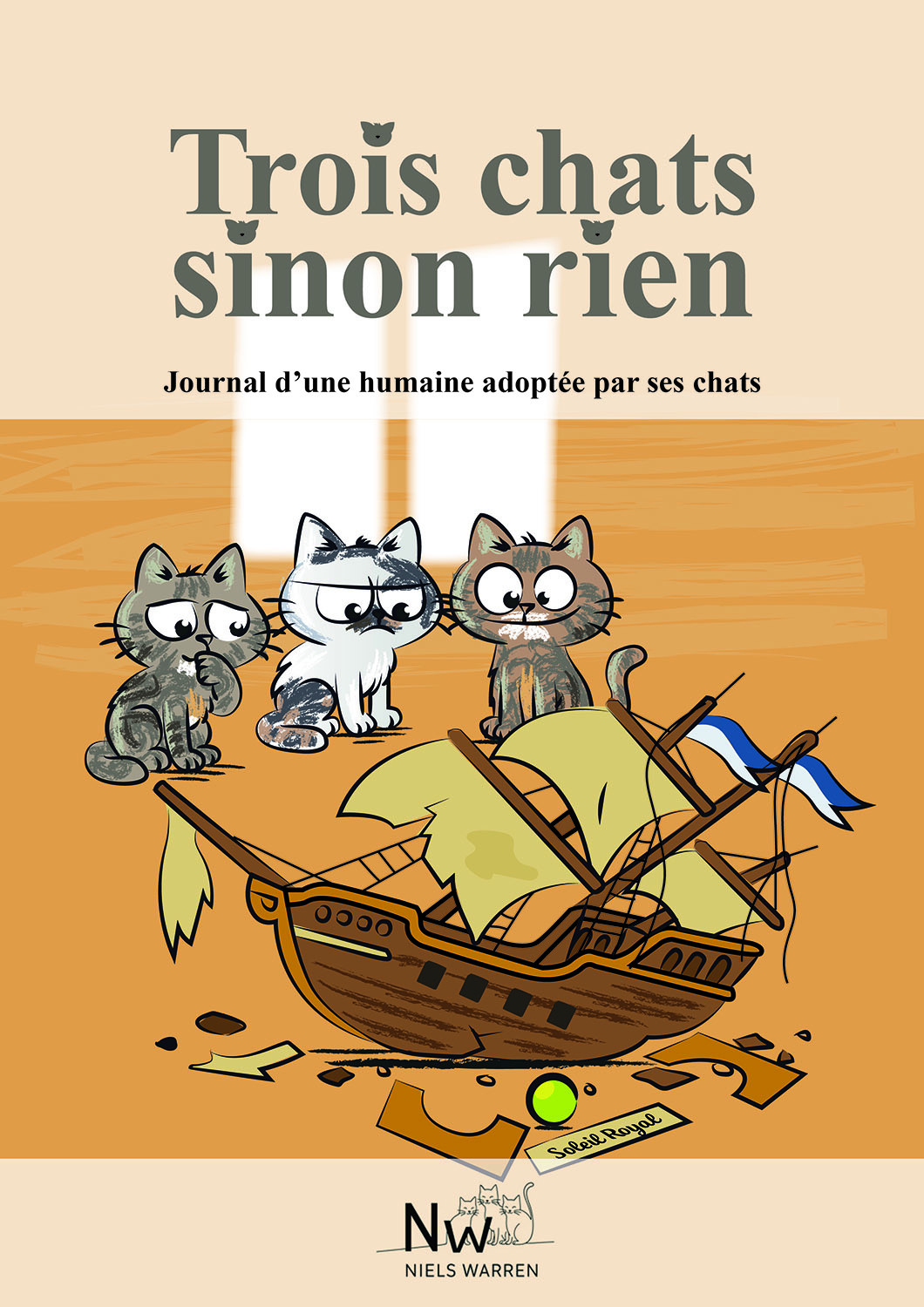 Synopsis : "Trois chats sinon rien" est un récit narratif et poétique dans lequel Niels Warren prête sa plume à trois félins : Frimousse, chat blanc au tempérament de roi, et ses compagnons Grizou et Roucky, deux chatons aussi espiègles qu’attachants. L’histoire s’ouvre sur l’arrivée des animaux dans le foyer d’une humaine qui pensait n’adopter “qu’un chat”, et qui découvre vite que l’amour des félins se multiplie, transformant la maison en un véritable royaume félin. Chaque chapitre, entre humour et tendresse, donne la parole aux chats pour raconter la vie quotidienne : la conquête du canapé, les repas négociés avec art, la majesté des siestes, l’importance de la litière, les folles cavalcades au petit matin ou encore l’observation attentive des drôles d’habitudes humaines. L’ouvrage oscille entre anecdotes comiques et moments philosophiques, où les chats deviennent les commentateurs amusés et parfois lucides de la vie humaine. Des références littéraires et artistiques (Victor Hugo, Hemingway, Léonard de Vinci) enrichissent le texte, donnant au récit une dimension universelle et intemporelle. Au-delà de la chronique animalière, le livre délivre un message profond : l’adoption animale n’est pas seulement un geste de sauvetage, mais une rencontre heureuse qui transforme autant l’animal que l’humain. Le récit devient ainsi une ode à la complicité, au respect mutuel et au bonheur simple partagé entre les espèces.